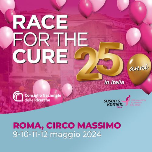 Consiglio nazionale delle ricerche partecipa alla manifestazione Race for the Cure, un evento che va oltre la competizione sportiva per fare la differenza nella lotta contro il tumore al seno. Appuntamento simbolo di Komen Italia e la più grande manifestazione sulla ricerca per il cancro con cui è possibile negli ultimi 25 anni dare avvio in tutta Italia a migliaia di nuovi progetti di prevenzione e sostegno alle donne che soffrono. Le protagoniste della Race for the Cure sono le "donne in rosa", la loro speciale maglia, aiuta a sensibilizzare l’opinione pubblica sull’importanza di anticipare le diagnosi della malattia. L'iniziativa prosegue nel 2024 la sua corsa benefica di prevenzione e solidarietà, colorando di rosa le città italiane di Roma (dal 9 al 12 maggio), Bari (dal 17 al 19 maggio), Bologna (dal 20 al 22 settembre), Brescia (da 27 al 29 settembre), Matera (dal 27 al 29 settembre).